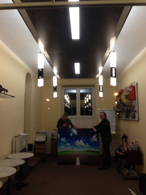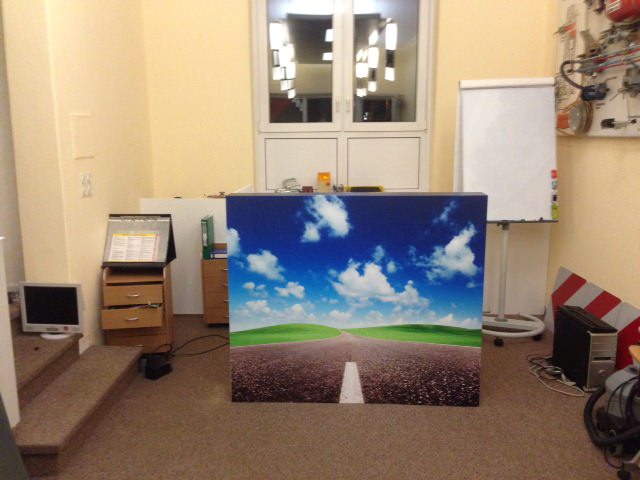 Gute Geschäfte. Individuelle Lösungen im Bereich Ladenbau, Praxen und Büros. Es muss nicht immer ein komplett neues Konzept her. Oftmals ist man auf der Suche nach simplen Detaillösungen. So bauten wir in eine Eingangshalle eines Industriegebietes eine 28 m lange und 3,2 m hohe beidseitige Akustikwand mit Wunschmotiv. In einer Fahrschule hängt eine Straße an der Decke.